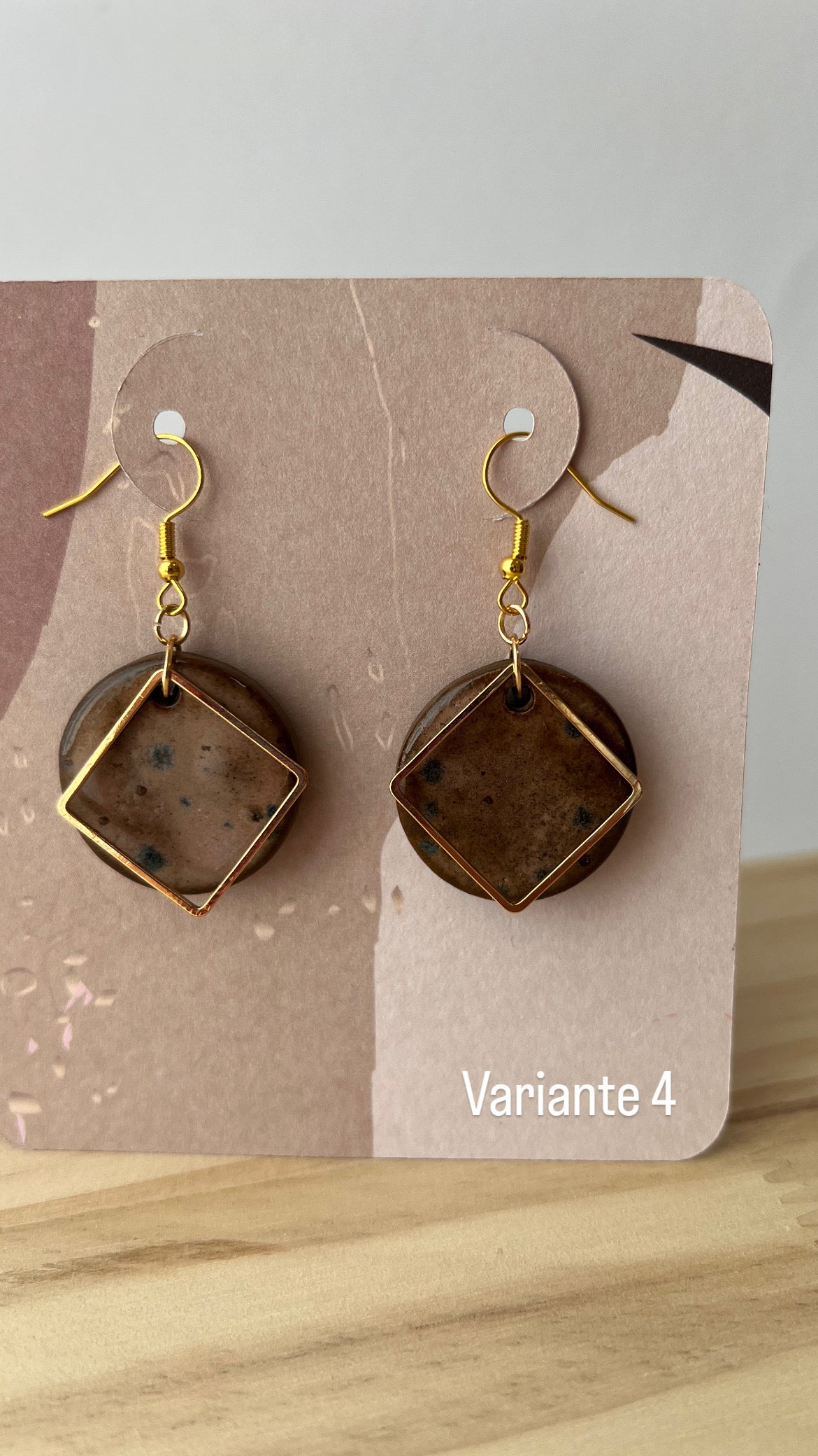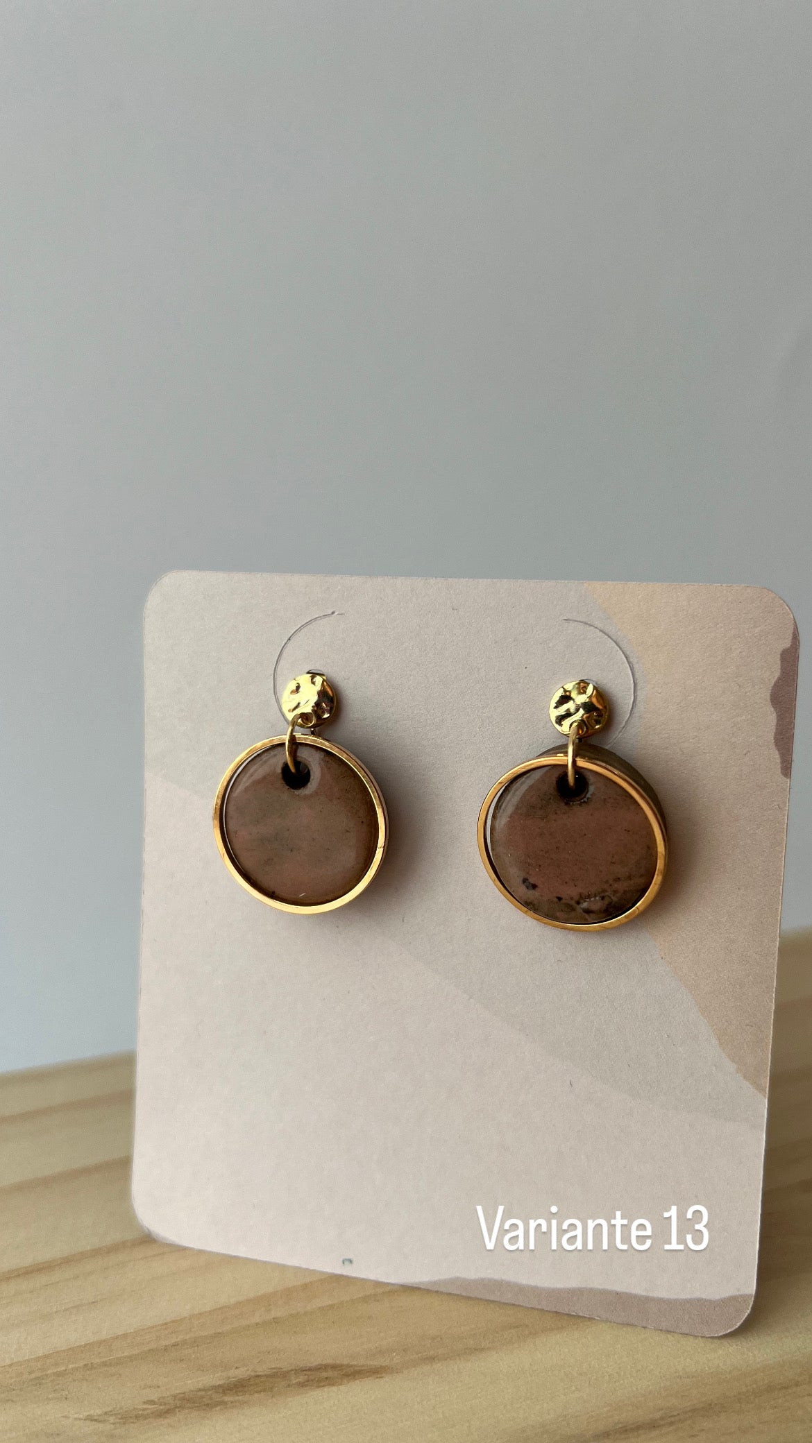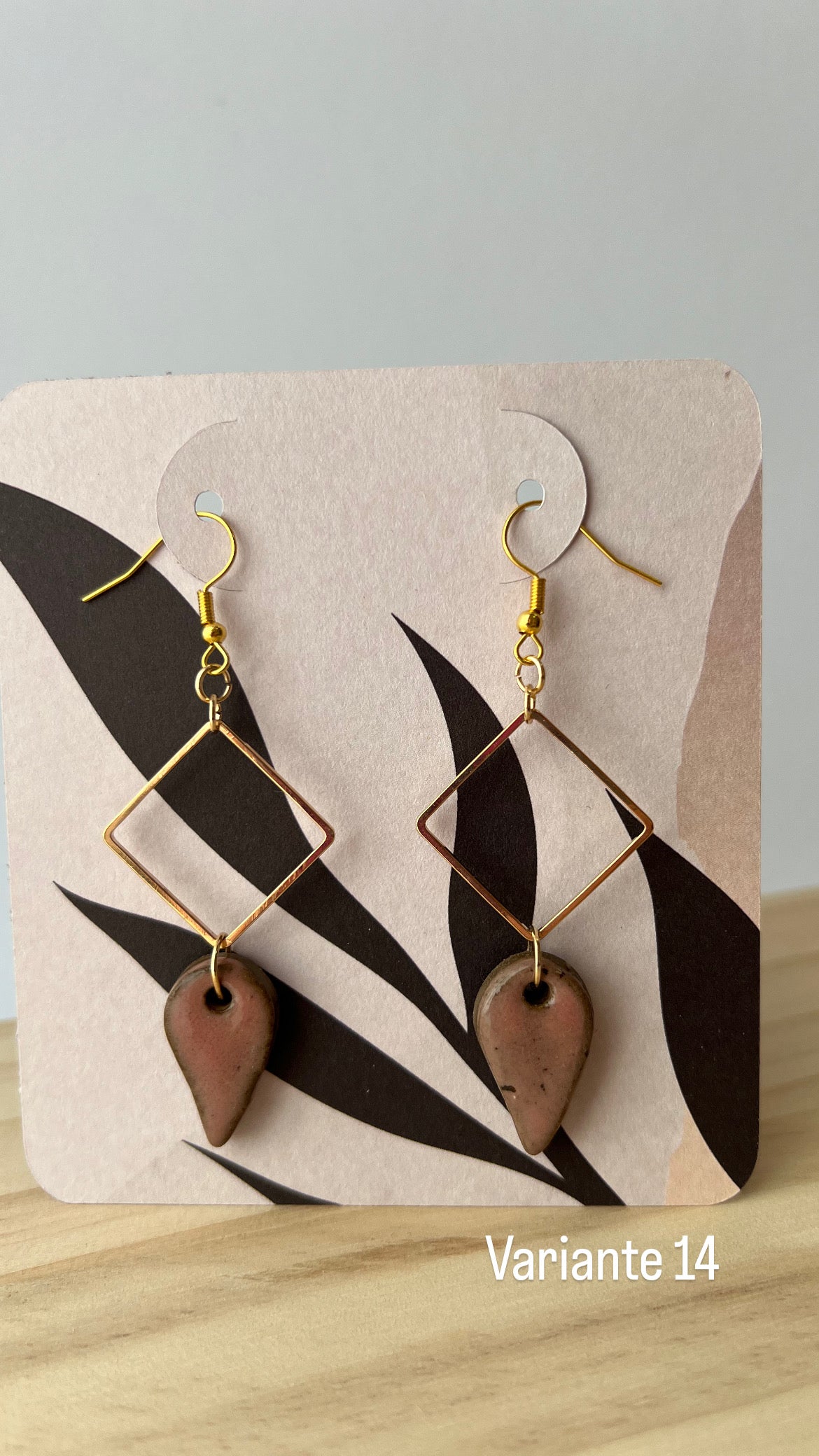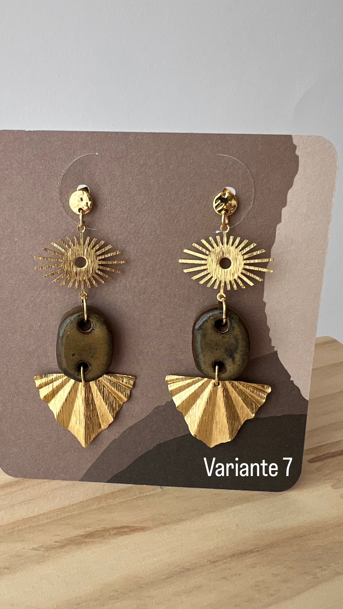 die Kombination aus glasiertem Steinzeug und goldfarbenem Metall macht die Ohrringe zu einem besonderen Hingucker – edel, aber trotzdem unaufgeregt. sie passen perfekt zu Jeans und T-shirt, bringen aber auch zu besonderen Momenten diesen kleinen Glanzmoment ans Ohr.